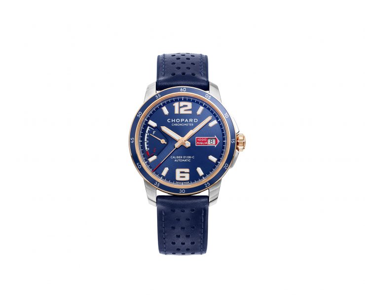 The first mechanical Mille Miglia appeared in 1990. At that time, Chopard presented the first rattrapante chronograph made of steel with a mechanical movement. In 1994, the Dunlop Racing strap made of natural rubber was introduced. The typical racing tire profile from the 1960s adorns many models in the collection. Since 2011, it has been fully integrated into the case.